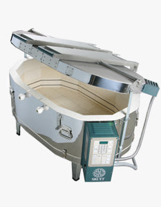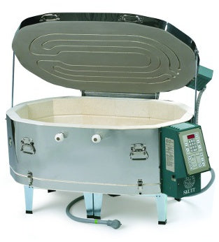 The Skutt GM1414 glass kiln fires to 1,800°F on 208 or 240 volts. It features an oval design and is perfect for classrooms and studios.